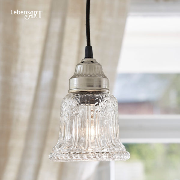 Die Kabellänge von ca. 100 cm ist variabel und passt sich flexibel Ihrem Raum an. Mit einem Durchmesser von ca. 13 cm und einer Höhe von ca. 20 cm ist die Lampe kompakt, wirkt dabei aber ausgesprochen elegant. Geeignet für E27-Leuchtmittel bis max. 25 Watt (nicht enthalten).