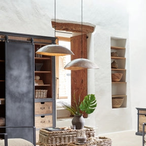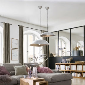 Die Kombination aus einem größeren und einem kleineren Lampenschirm verleiht jedem Raum eine spannende Optik. Dank der langen Kabelaufhängung lassen sich die Lampen flexibel positionieren und schaffen ein angenehm gerichtetes Licht – ideal für gemütliche Abende oder stilvolle Beleuchtungskonzepte.