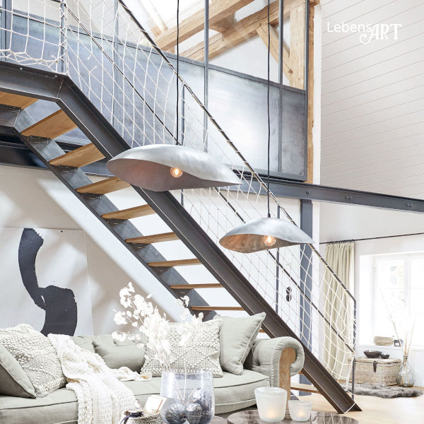 Mit dem Hängelampen-Set GARIÉS holen Sie sich urbanen Industrial-Charme direkt nach Hause. Die beiden silberfarbenen Lampen aus hochwertigem Aluminium bestechen durch ihr modernes, ovales Design und setzen über Esstisch, Kücheninsel oder im Wohnbereich eindrucksvolle Akzente.