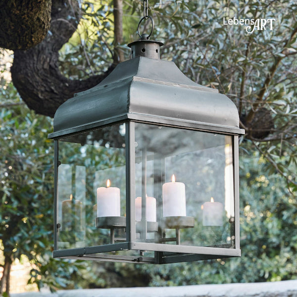 Ob auf Terrasse, Balkon oder im Wohnbereich – diese Laterne sorgt mit einer Kerze oder LED-Lichtquelle für gemütliche Atmosphäre und dekorative Akzente.