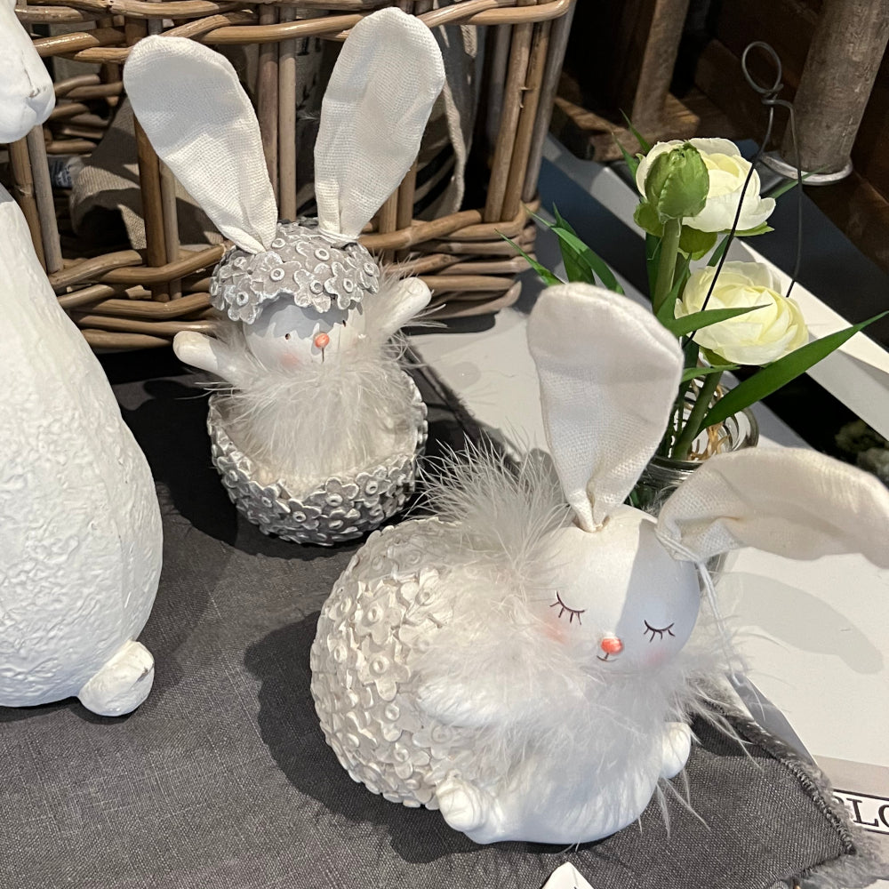 Hasen Ei Polyresin Federn weiß/grau Pärchen #21447