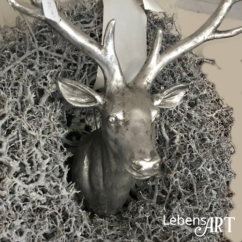 Hirschkopf - Metall / Aluminium vernickelt - B.42 H.48 T.26 cm