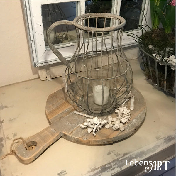 Holz-Tablett mit Griff in Shabby-Optik grau (rund)