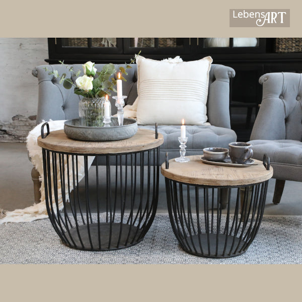 Kaffee-/Sofatische Holzplatte Set Schwarz