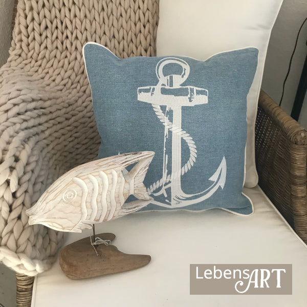 Kissen Leinen-Gemisch hellblau Anker