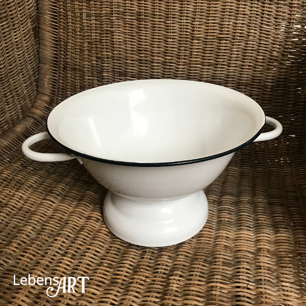 Omas Emaille-Topf auf Fuß weiß in Shabby-Optik (groß)