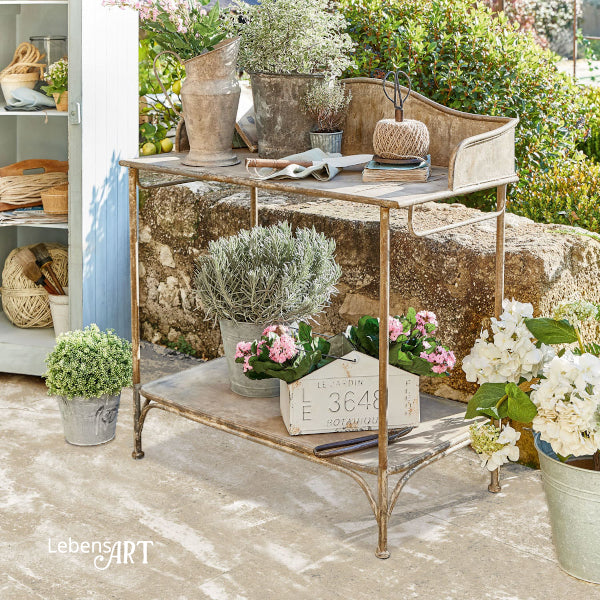 Der BANNERS Pflanztisch verbindet nostalgische Optik mit praktischer Funktionalität – perfekt für stilvolles Gärtnern und dekoratives Gestalten im Außenbereich.
