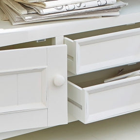 Dank seines frischen, leichten Designs passt das Sideboard sowohl in klassische Landhaus- als auch moderne Hamptons-Interieurs. Ein stilvolles Möbelstück, das Charme und Funktion harmonisch vereint.