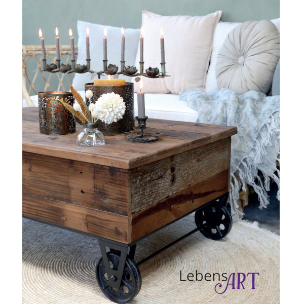 Sofatisch Holz Natur Stahl-Rollen/schwarz