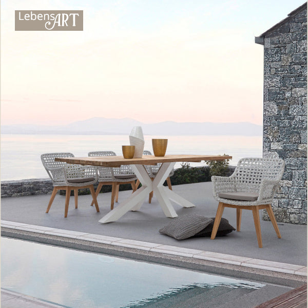 Stuhl Geflecht Weiß-Grau Teak-Beine