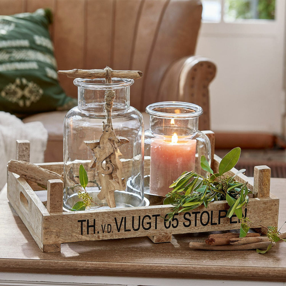 Tablett Stolpen Mango-Holz Vintage-Print #14418