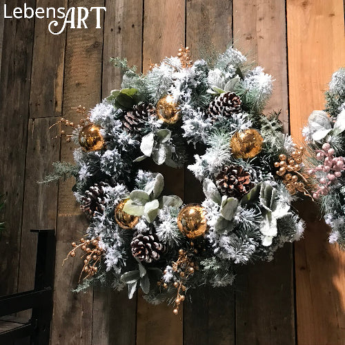 Weihnachts-Kranz - aus Kunststoff-Ästen - geweißt - Weiß/Gold -D.50 cm außen - komplett