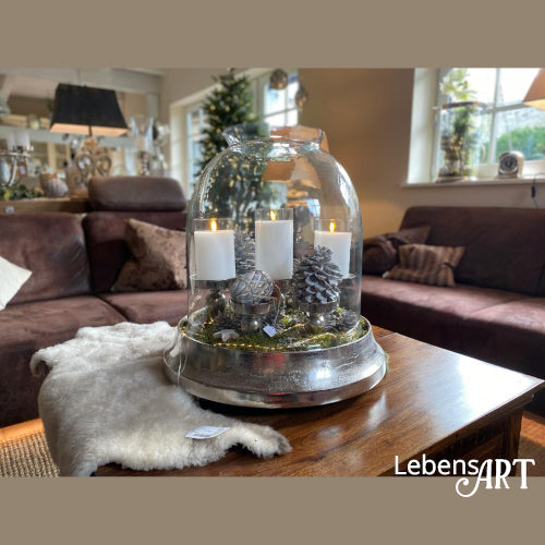 Windlicht - 7 Kerzenhalter - abnehmbare Glas-Kuppel - Alu/Nickel - H.53 cm - D.53 cm - Indoor