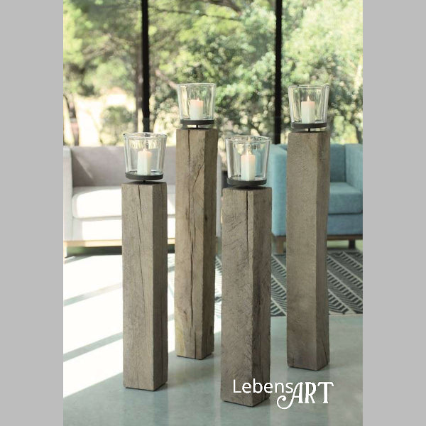 Windlicht Eiche grau Glaseinsatz auf Metallteller